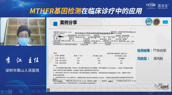 第一位講者是來自深圳市南山人民醫(yī)院的李江主任。李江主任的匯報主題是“MTHFR基因檢測在婦產(chǎn)科相關(guān)疾病診療中的應(yīng)用”。匯報主要圍繞MTHFR在孕產(chǎn)婦葉酸補充、孕中后期相關(guān)疾病風(fēng)險、新生兒出生缺陷等幾個方面進(jìn)行了綜合性的匯報。同時李主任還創(chuàng)新地結(jié)合了平時工作中的臨床案例和應(yīng)用實際對MTHFR基因檢測進(jìn)行了深入淺出的闡述,讓與會者耳目一新。