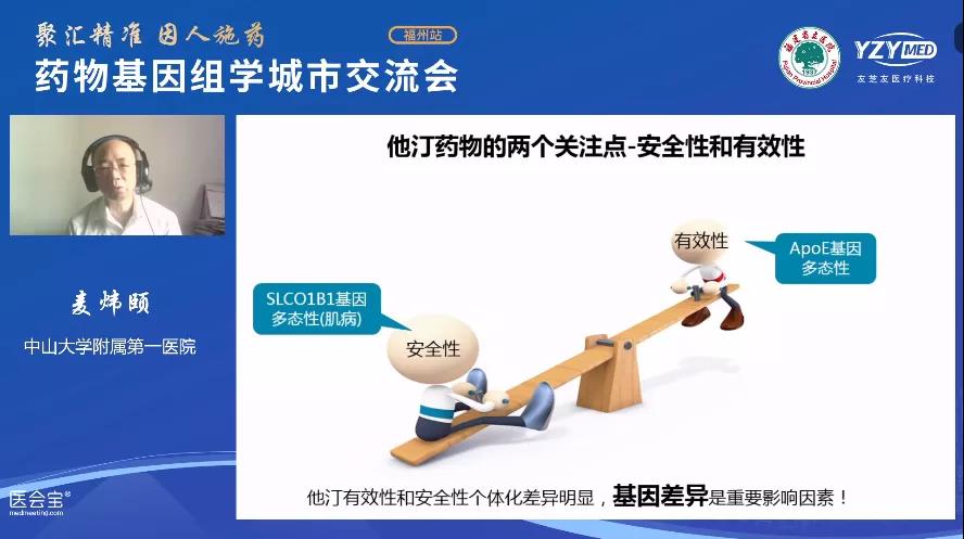 下半場伊始,中山大學(xué)附屬第一醫(yī)院的麥煒頤主任帶來了《他汀類藥物基因檢測在臨床應(yīng)用》的精彩報(bào)告。他汀類藥物臨床應(yīng)用會(huì)出現(xiàn)副作用,包括肌酸、肌痛、甚至橫紋肌溶解等,還會(huì)出現(xiàn)用藥效果不好等情況。針對這樣用藥情況的人群,麥主任從他汀類藥物的安全性和有效性相關(guān)的兩個(gè)基因,解釋了他汀類藥物不良反應(yīng)發(fā)生的機(jī)制,以及降脂療效的評估,并給臨床做出了以基因檢測為導(dǎo)向的用藥建議。