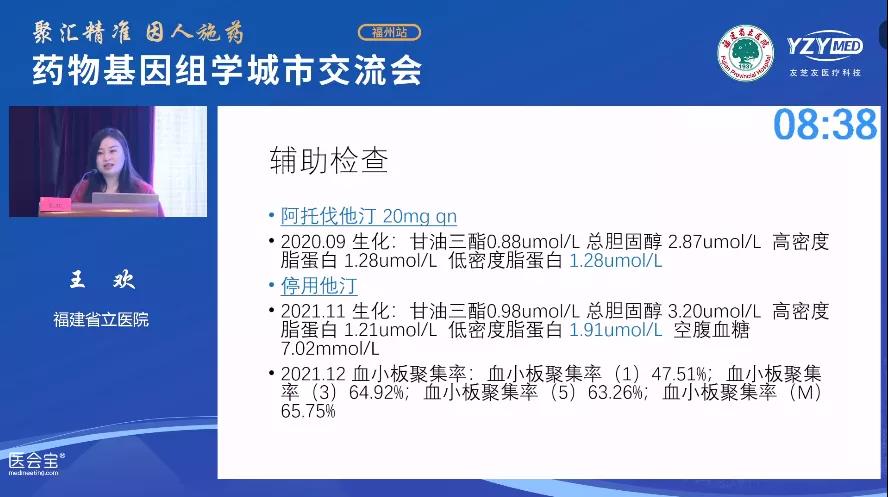 首先,由福建省立醫(yī)院心內(nèi)科的王歡老師進(jìn)行了經(jīng)典案例分享。王歡老師對他汀和氯吡格雷聯(lián)用的經(jīng)典病例進(jìn)行了詳細(xì)分析,讓大家對于基因檢測在臨床藥物指導(dǎo)方向有了非常深刻的認(rèn)識!