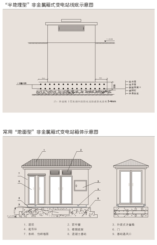 高壓、低壓、變壓器設備均在地面以下,設備檢修可吊去大蓋,操作人員由人井孔通道入口。適合在廣場綠化帶、公園等環境安裝,不影響人們觀景視線等優點。用戶可采用半埋式及全埋式產品,可根據不同的場所進行生產。