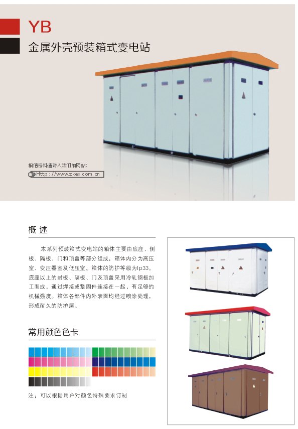 本系列預裝式箱式變電站的箱體主要由底座、側板、隔板、門和頂蓋等部分組成,箱體內分為高壓室、變壓器室及低壓室。箱體的防護等級為Ip33。底座以上的封板、隔板、門及頂蓋采用冷軋鋼板加工而成,通過焊接或緊固件連接在一起,有足夠的。
