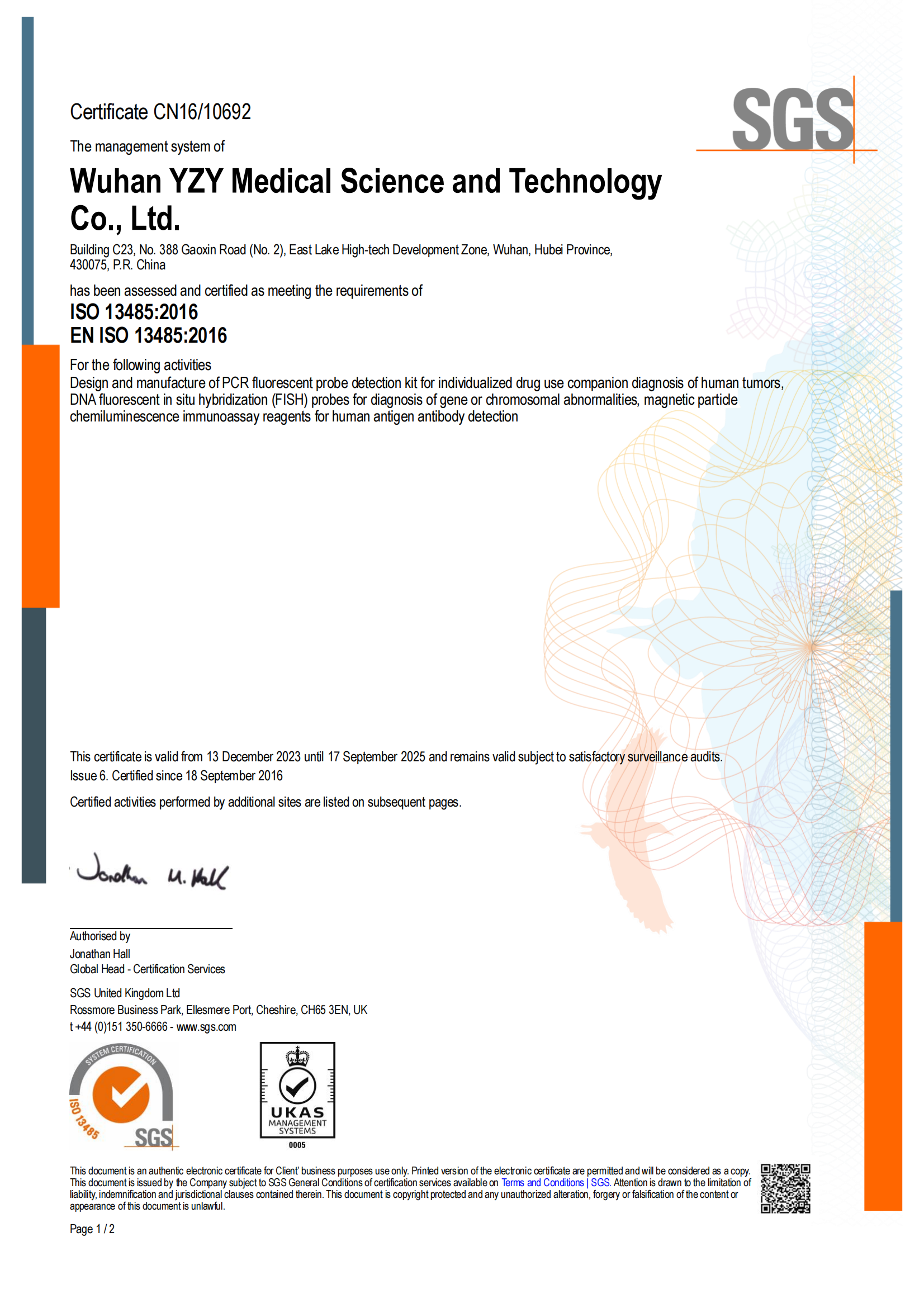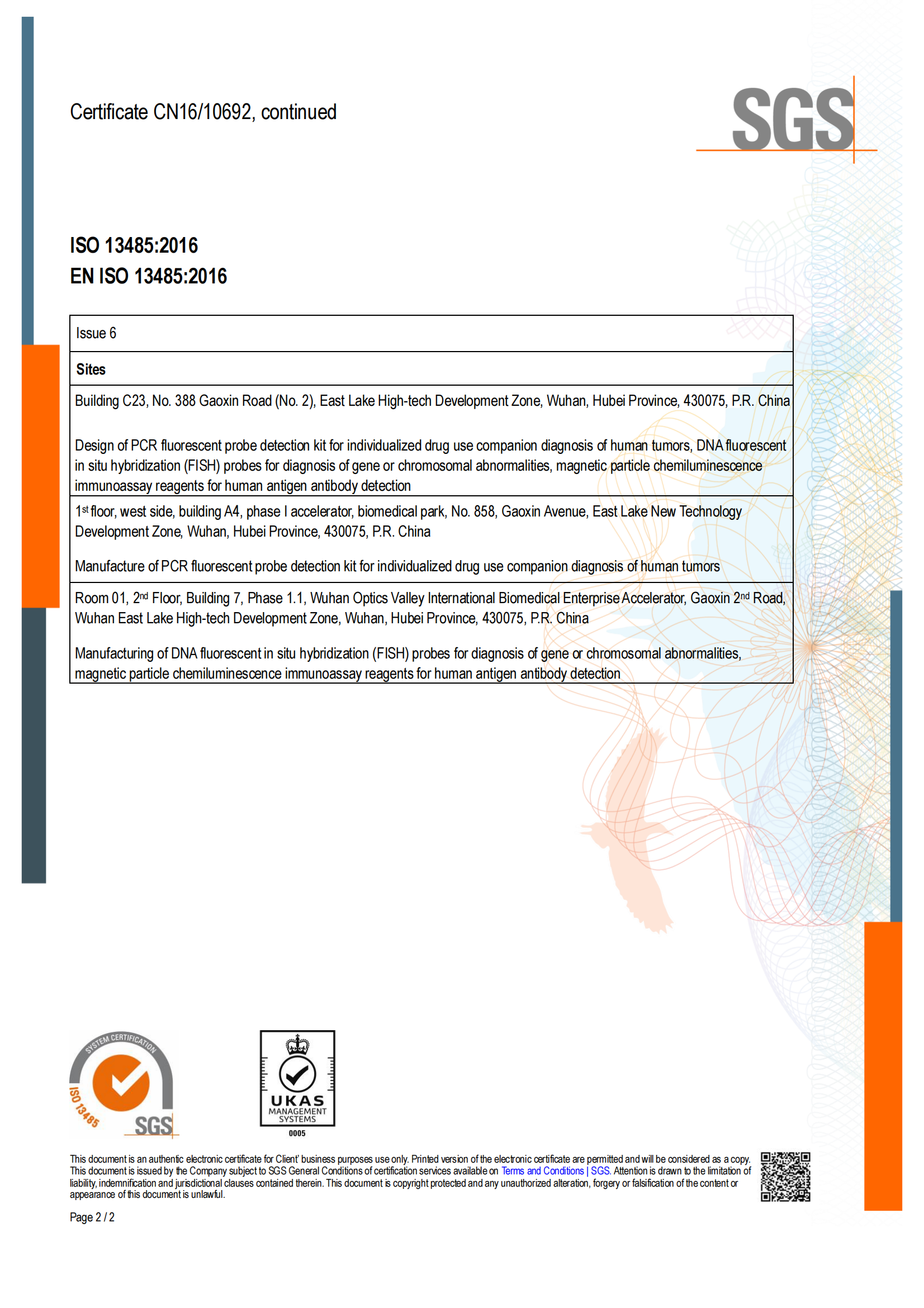 Congratulations! YZY MED has successfully passed the ISO 13485:2016 medical device quality management system certification and obtain the certificate, which covers the design and manufacture of related reagents and devices, including pharmacogenomics(PGx)and tumor targeting companion diagnostic(CDx) PCR kits, FISH devices and probes, CTCBIOPSY® circulating tumor cells autoanalyzer and chemiluminescence product line.